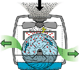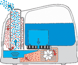 Bei dieser sehr wirkungsvollen Technologie in der Luftbefeuchtung wird das Wasser mit Hochfrequenzschwingungen in mikrofeinen Nebel umgewandelt, der dann durch ein Gebläse an die Raumluft abgegeben wird, wo er sofort verdunstet......AirWasher